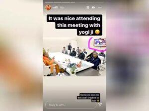 उर्फी जावेद ने इंस्टाग्राम स्टोरी पर एक फोटो शेयर की है जिसमें उत्तरप्रदेश के मुख्यमंत्री योगी आदित्यनाथ एक मीटिंग अटेंड करते नजर आ रहे हैं. मीटिंग के दौरान उनके सामने टीवी चल रहा है. रोचक बात ये है कि टीवी की स्क्रीन पर उर्फी जावेद नजर आ रही हैं. यही फोटो उर्फी ने अपनी इंस्टाग्राम स्टोरी पर शेयर की है जिसमें योगी जी अन्य सदस्यों संग बैठे नजर आ रहे हैं। फोटो शेयर करते हुए उर्फी ने कैप्शन में लिखा कि- ‘योगी जी के साथ इस मीटिंग को अटेंड करना अद्भुत था. किसी ने मुझे ये भेजा और मुझे तो बहुत हंसी आ गई.’ टीवी पर देखा जा सकता है कि उर्फी जावेद नेवी ब्लू कलर की साड़ी में नजर आ रही हैं. वैसे तो ये एक इत्तेफाक है कि जब ये तस्वीर क्लिक की गई उसी समय उर्फी जावेद स्क्रीन पर दिखाई दे रही थीं. मगर उर्फी ने इसे बेहद फनी बना दिया.